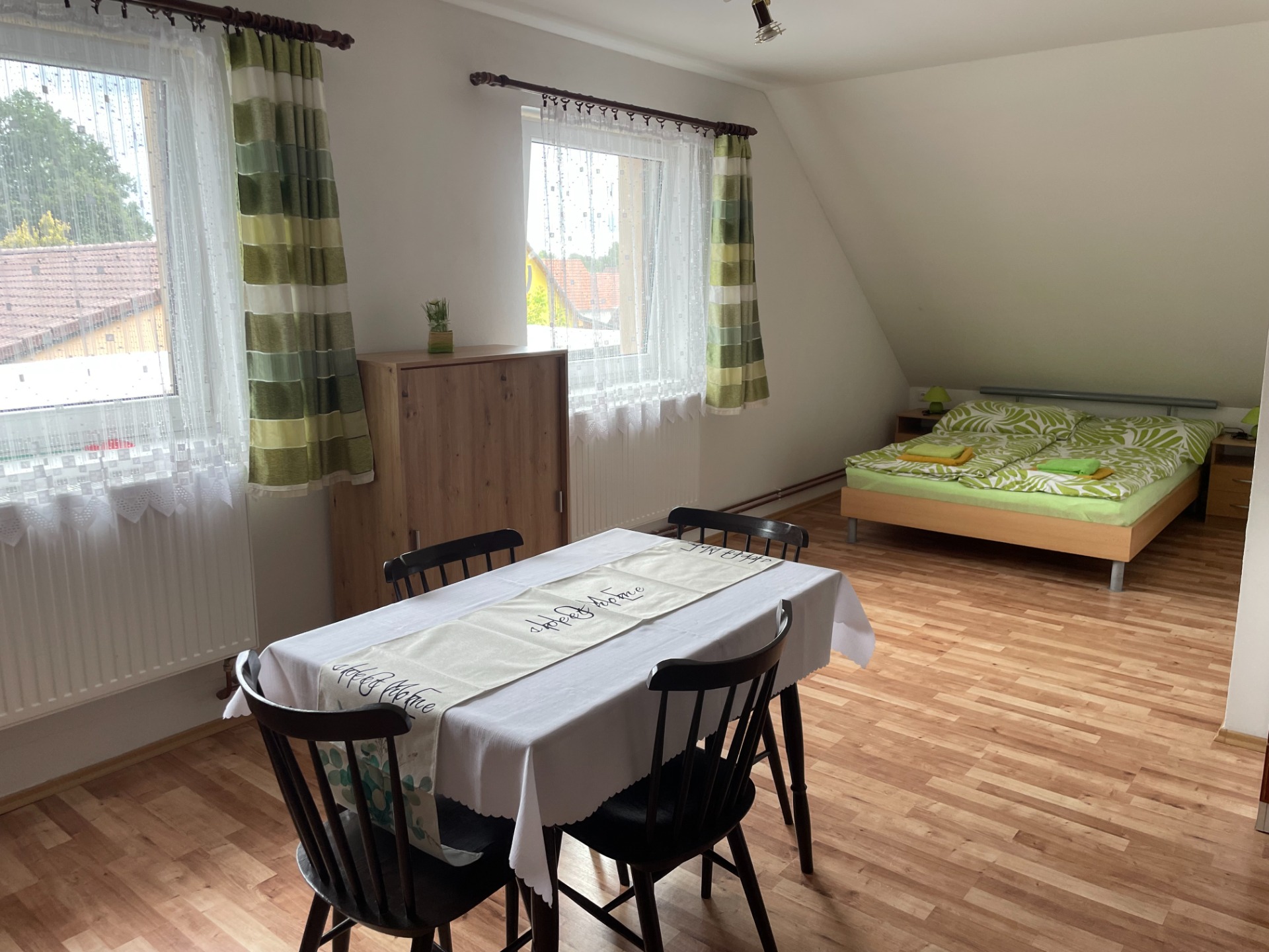 Apartmán se nachází v podkroví rodinného domu.